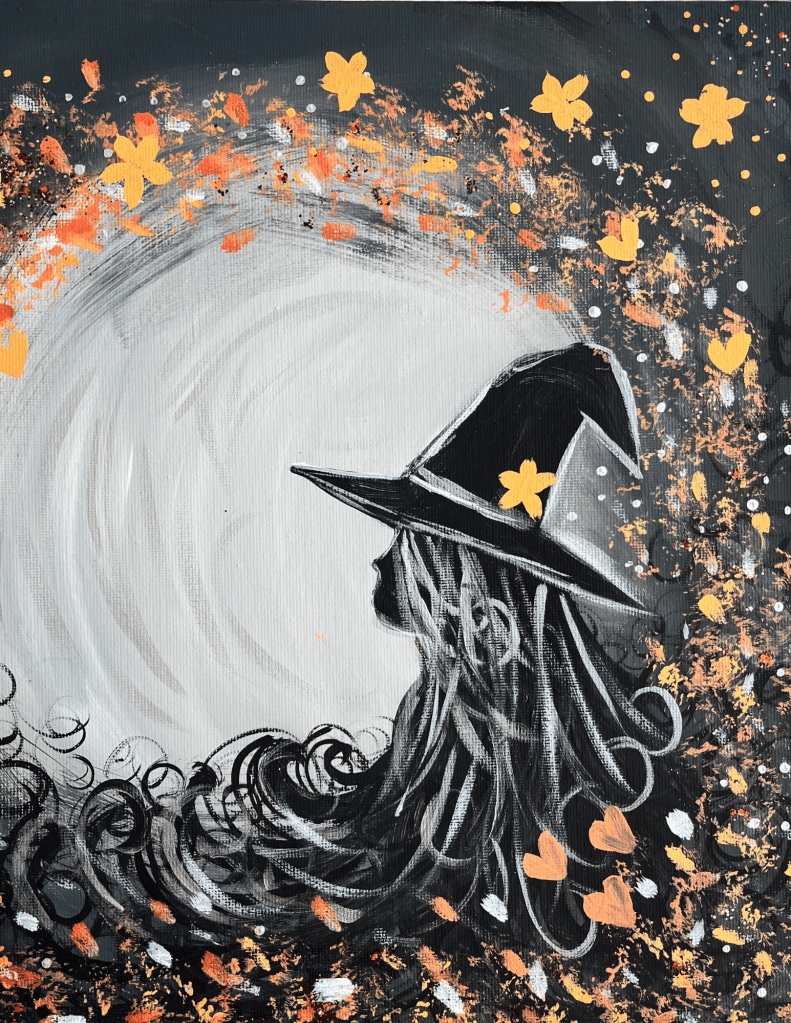 Step into the spooky season with this enchanting Fallen Witch painting!