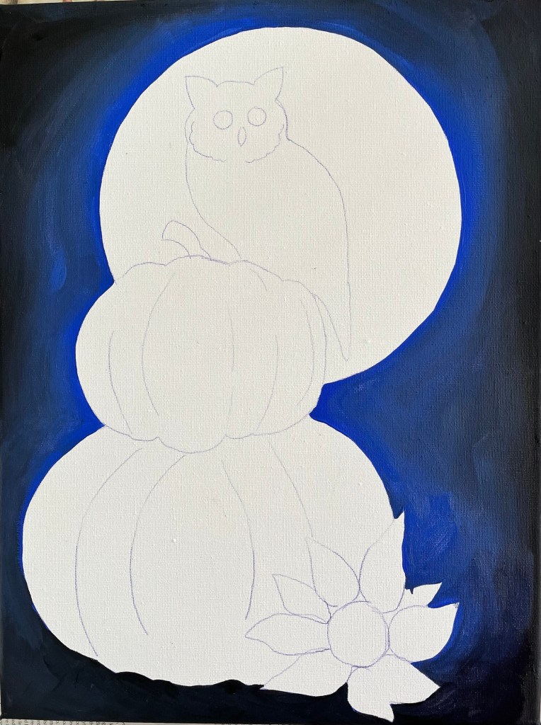 - Add a little extra black to the bottom area beneath the pumpkins for depth and shadow.